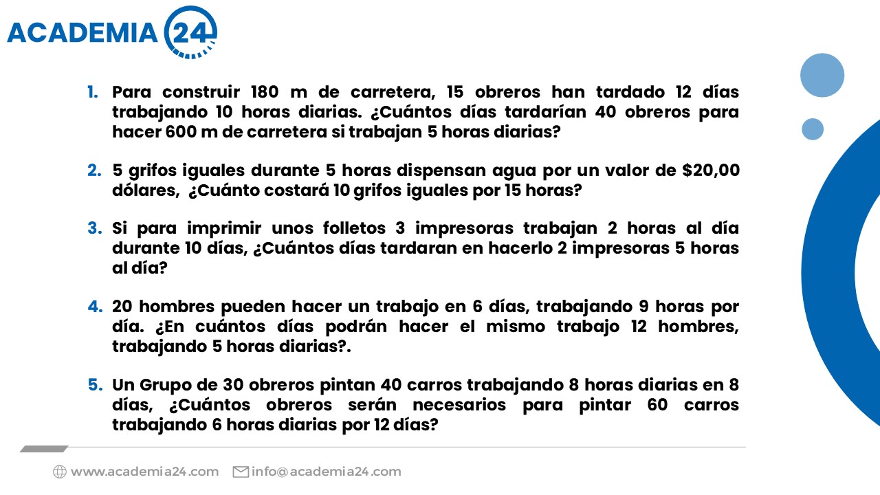 Definición del concepto de regla de tres y su importancia. Resolución de problemas usando regla de tres inversa