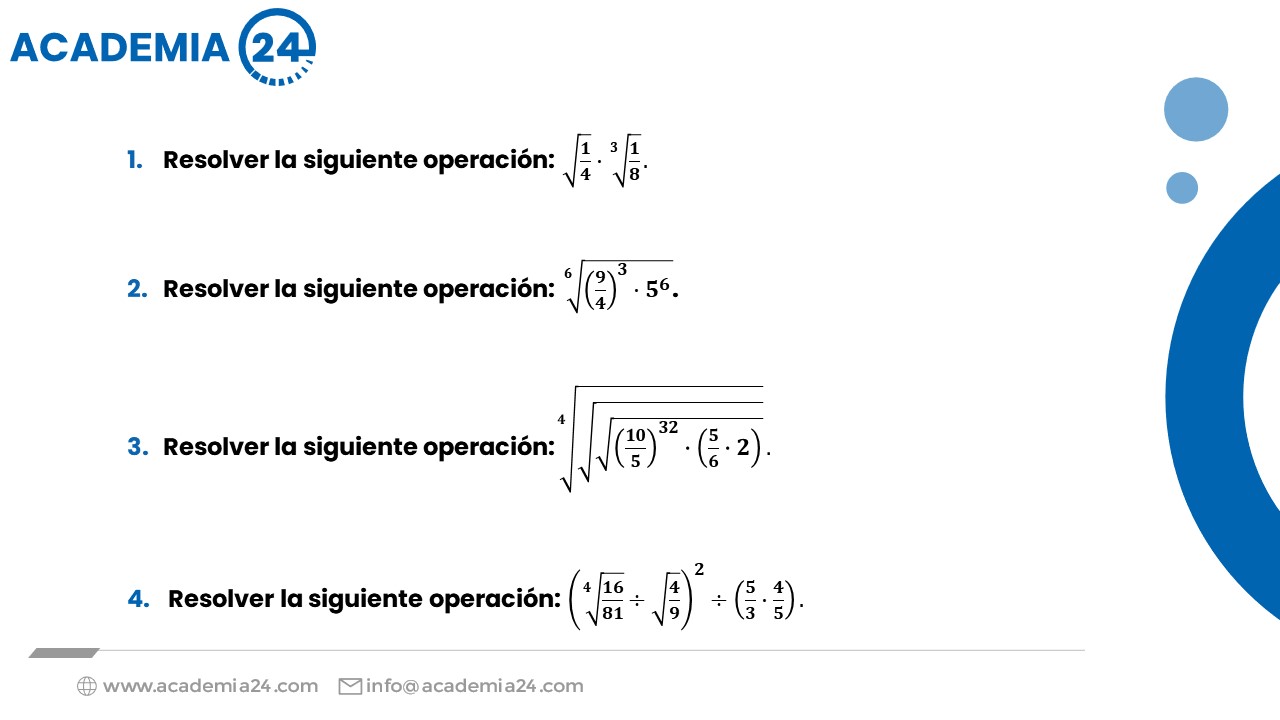 Deducción del concepto de radicación a partir de la potenciación. Resolución de ejercicios de radicación y sus propiedades