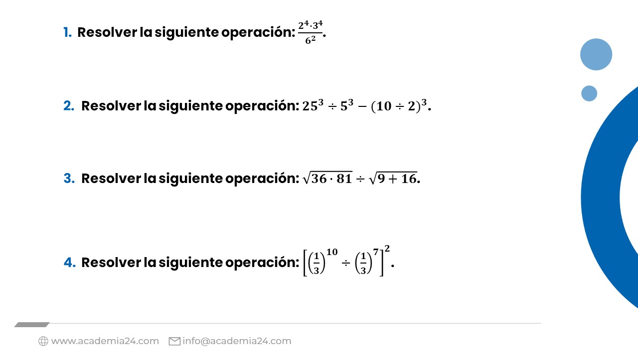 Deducción del concepto de potenciación a partir de la multiplicación. Resolución de ejercicios de potenciación y sus propiedades
