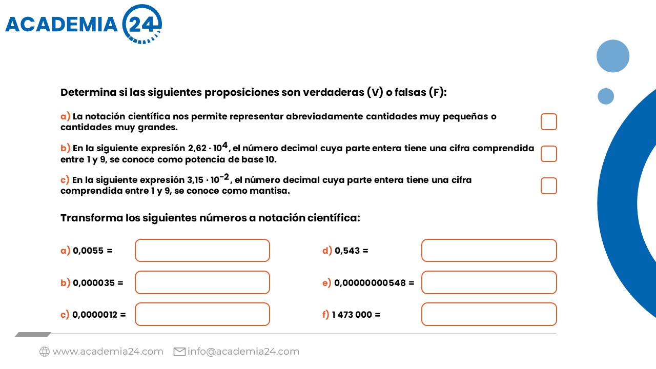 Notación Científica (Potencia de base 10): Deducción del origen de la notación científica. Lectoescritura de cantidades grandes o pequeñas en notación científica